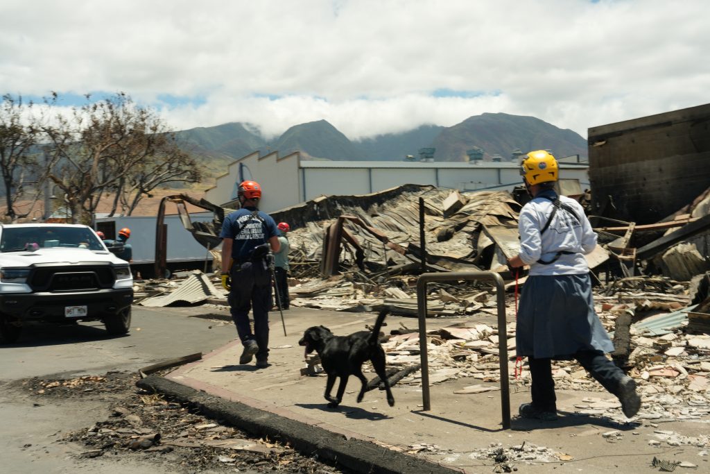 Räddningsarbetare i staden Lahaina på ön Maui. Foto: United States Department of Homeland Security