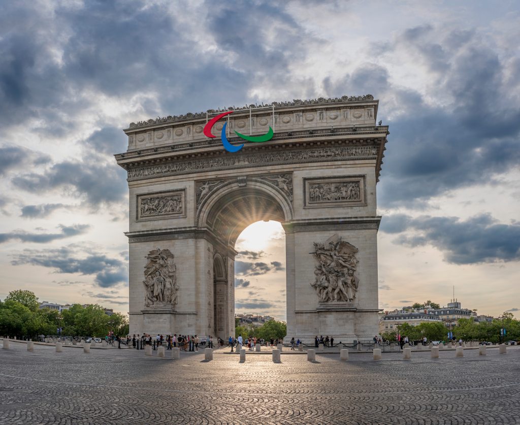 Paralympics logotyp pryder Triumfbågen i Paris. Foto: Shutterstock.