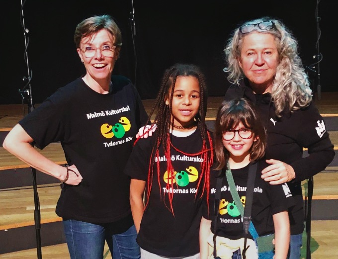 Minireportrarna Alba och Latifa har intervjuat körledarna Catrin Hansson-Flinck och Margareta Nilsson från Malmö Kulturskola. Foto: Per ”Padde” Almlund.