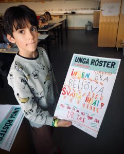 Barn och unga har rätt att säga och skriva vad de tycker är viktigt i deras liv. Det står i den svenska lagen Barnkonventionen.