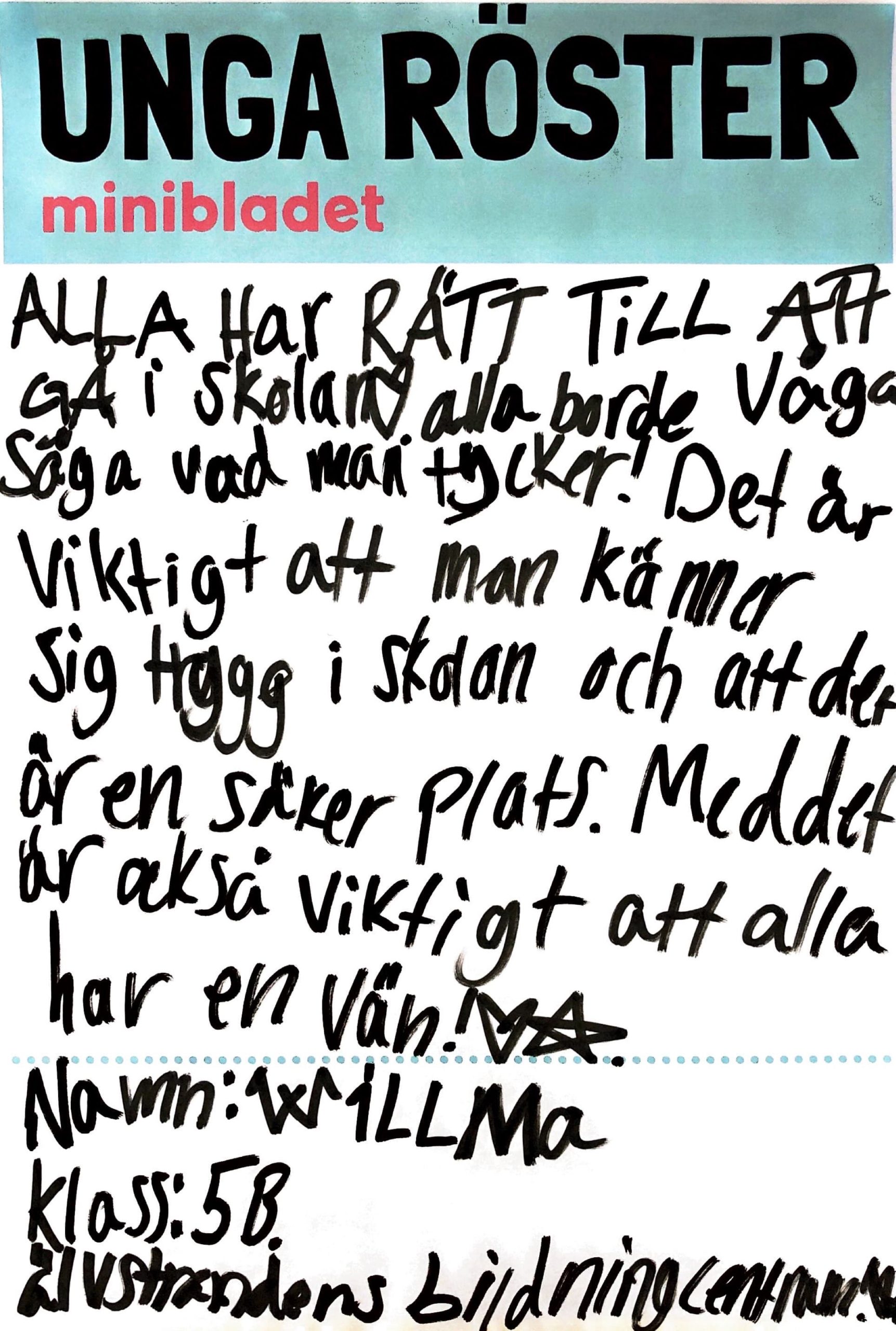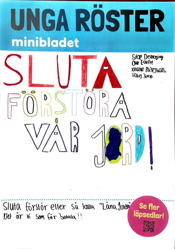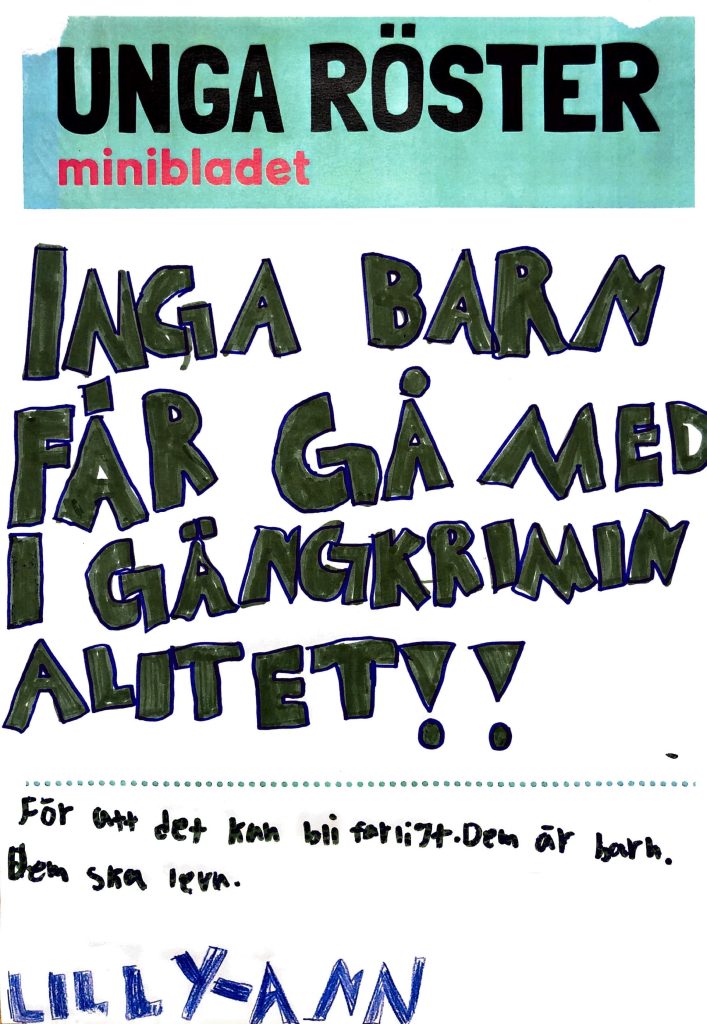 We are showing the world what swedish children and youth opinions are! We publish headlines made by first- to sixhth graders put on posters to showcase what is important to them.