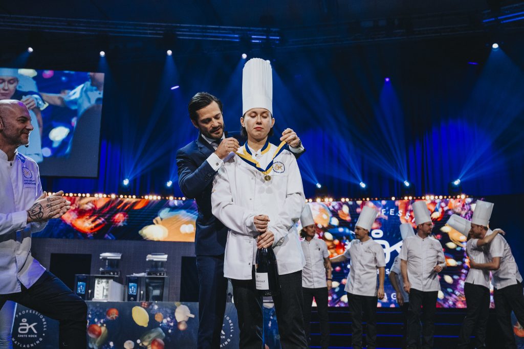 Desirée Jaks får medalj av prins Carl-Philip. Foto: Samuel Unéus/Årets kock